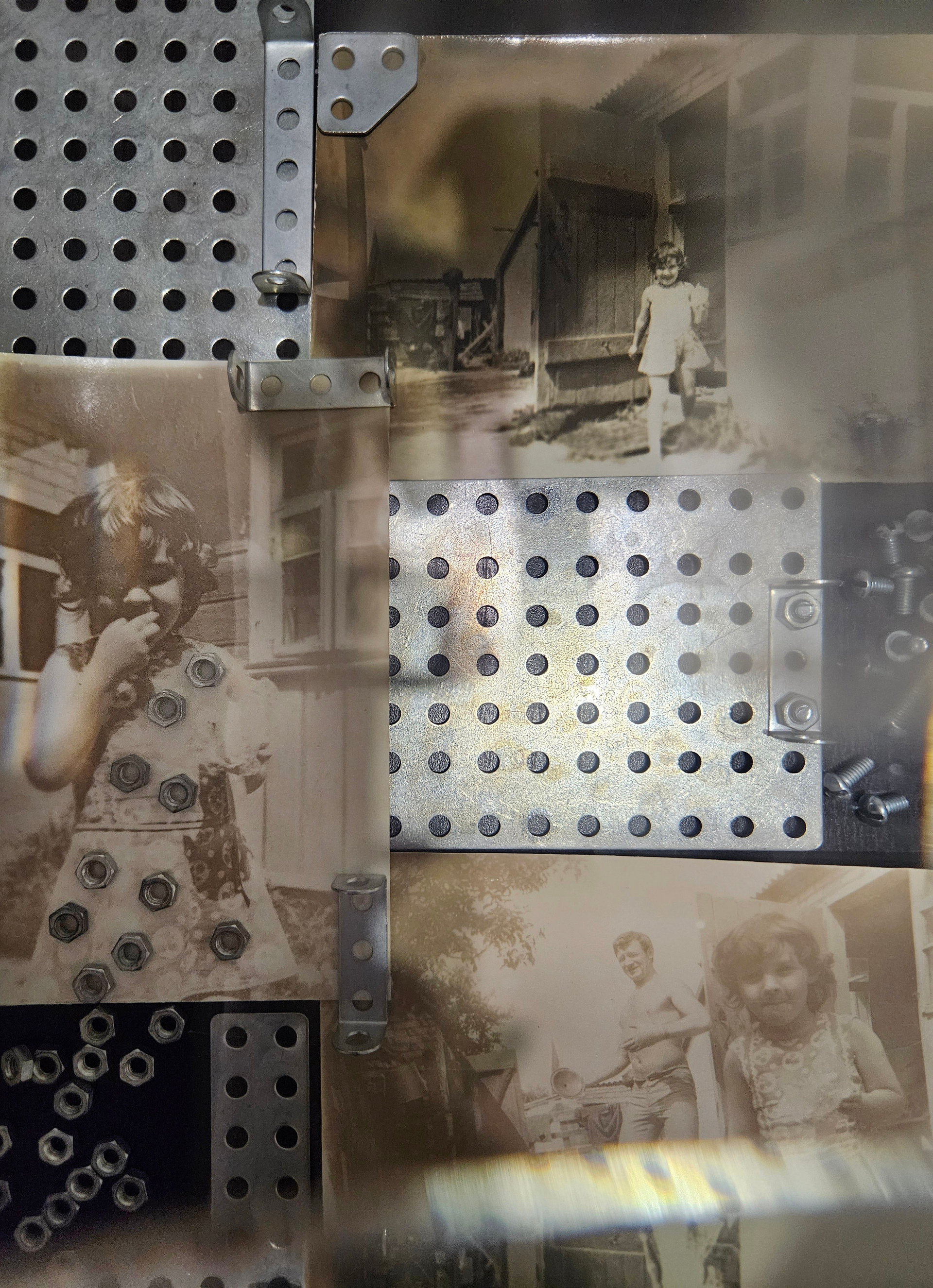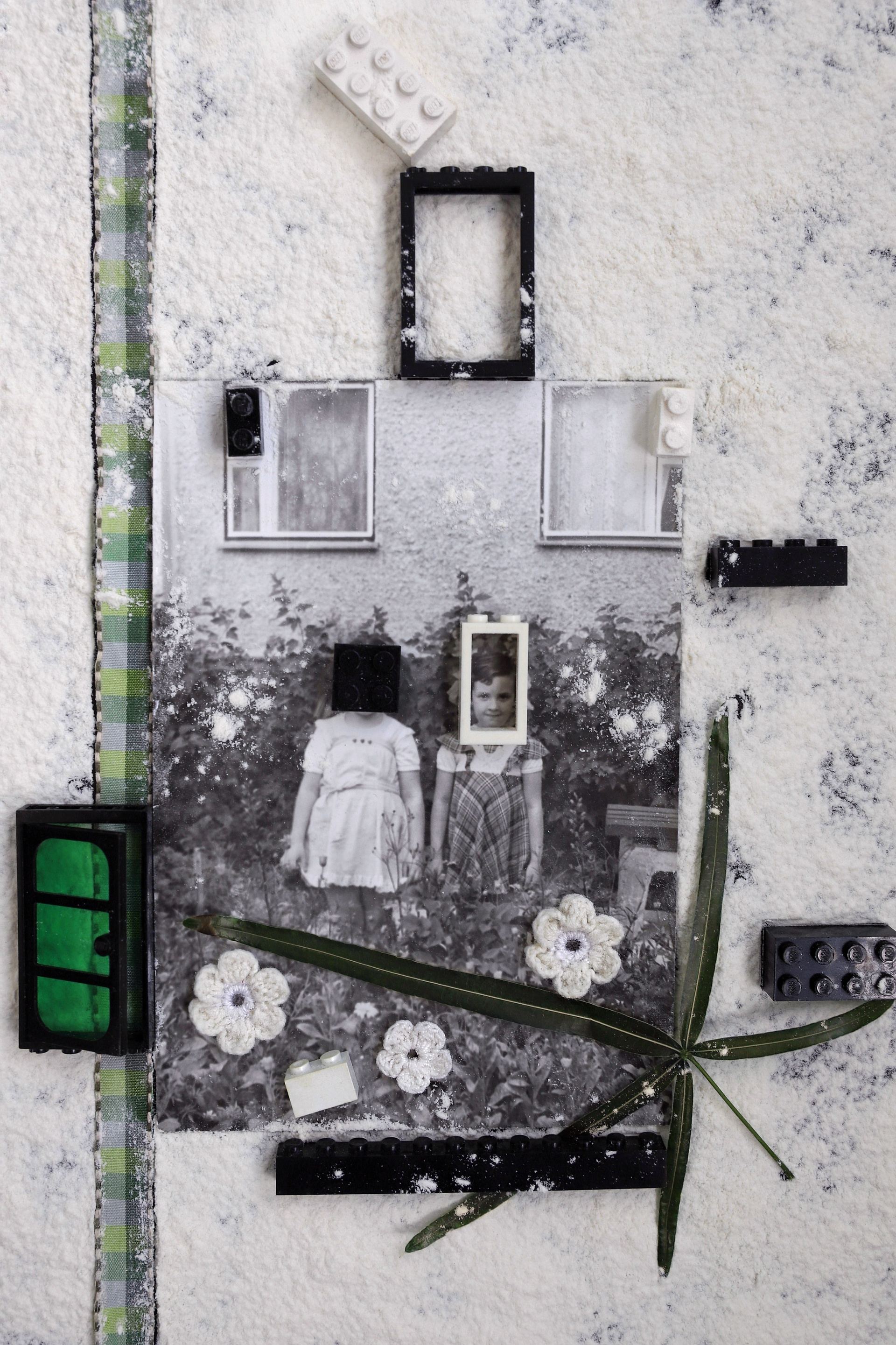 Отправляясь в погружение, я вмешиваюсь в архивные образы, используя материалы, которые можно найти дома: бусины, нитки, ручки для рисования, конструктор, цветы. Так я бужу своего внутреннего ребенка, погружаюсь в то время, исследую объем памяти, сталкиваясь со знакомыми вещами. Я реконструирую счастливые моменты повседневной жизни.